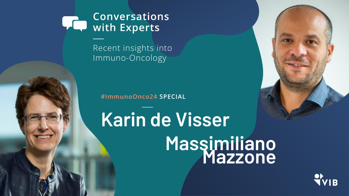 Massimiliano (Max) Mazzone is a group leader of the Laboratory of Tumor Inflammation and Angiogenesis at VIB-KU Leuven Center for Cancer Biology. He is also professor at the KU Leuven Department of Oncology at the Faculty of Medicine. Karin de Visser is the group leader of the Inflammation and Cancer group at the Netherlands Cancer Institute (NKI) and Oncode Institute, and a professor at Leiden University. Join us in this double interview, where we discuss their shared passion for immuno-oncology, their research, the upcoming Immuno-Oncology conference, and much more.