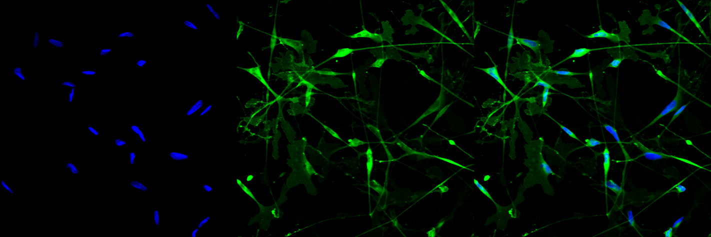 In the Laboratory of Neurobiology at the VIB-KU Leuven Center for Brain & Disease Research, we discovered that ALS-linked genetic defects disrupt the normal homeostasis of astrocytes and that these cells even secrete substances that can be toxic to motor neurons (1). Furthermore, if we add these 'sick' astrocytes to motor neurons, we’ve found that this disrupts the outgrowth of motor neurons and the formation of their connection with muscle cells. These processes are both hallmarks of ALS, so we can conclude that ALS-affected astrocytes influence the health of motor neurons through the loss of their supportive function and the gain of neurotoxic effects.