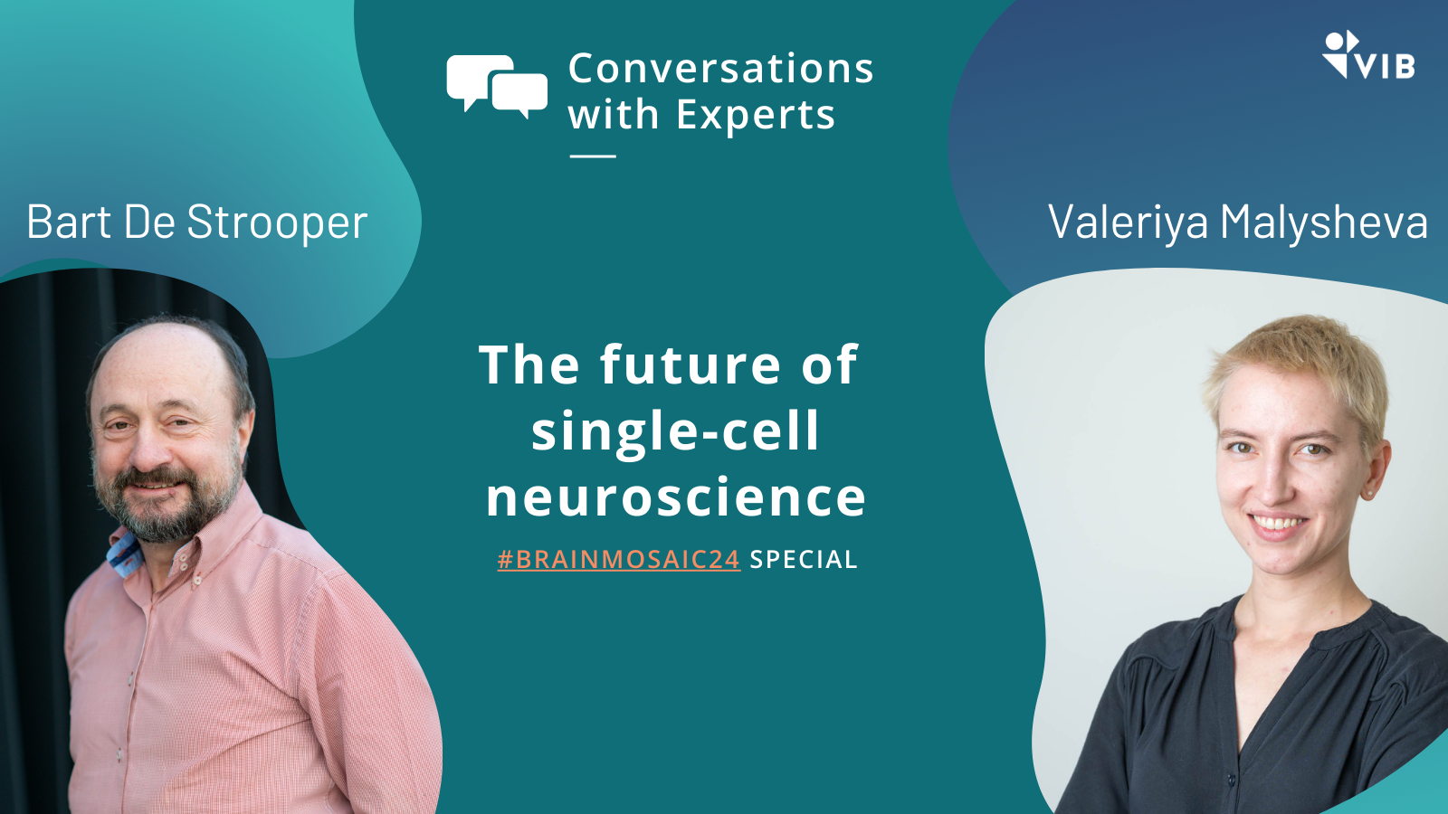 For the third edition of The Brain Mosaic, we sat down with two members of the organizing committee who are leading voices in the field of single-cell neuroscience. The first is Prof. Bart De Strooper, who leads the lab for the research of neurodegenerative disease at the VIB-KU Leuven Center for Brain & Disease Research. He goes into conversation with Prof. Valeriya Malysheva, who heads the Computational Neurobiology lab at the VIB-UAntwerp Center for Molecular Neurology. Their work dives deep into the mysteries of the brain at the cellular level, and they are united by their shared enthusiasm for the future of the field—though they also offer a word of caution. Here’s what they had to say about their research, the evolution of the field, and the next big breakthroughs.