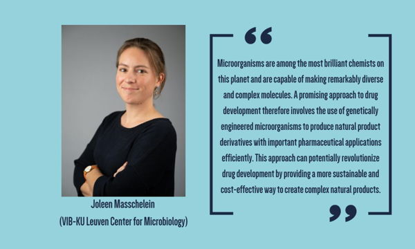20 September - Developing new drugs is a journey that requires significant resources and knowledge. A promising strategy involves harnessing the power of microbes in so-called microbial synthetic in vivo cell therapy systems to produce natural products with medicinal properties. The MiSTiC ERC (European Research Council) project led by Joleen Masschelein (VIB-KU Leuven Center for Microbiology) investigates the potential of beneficial, human-associated microorganisms to produce complex natural products for chronic intestinal disease treatment. This approach can potentially revolutionize drug development, as it addresses challenges of complexity and scarcity while offering new, sustainable routes to personalized medicine.